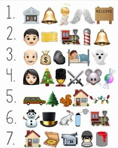 Devinez le film de Noël à partir de la série d'émojis affichés ci-dessous. Ajoutez vos réponses sur le canal Teams eConcordia Office. Le gagnant recevra une petite surprise (merci de ne pas utiliser d'IA ou d'autres outils… faites simplement appel à vos connaissances cinématographiques).